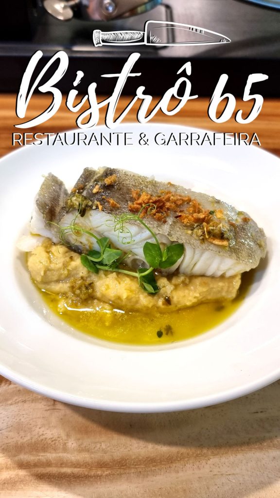 Preparamos o Lombo de bacalhau com puré de grão e o servimos com azeite de coentros. Esta é mais uma das novidades que adicionamos à ementa durante o mês do nosso primeiro aniversário. Tínhamos a esperança de que seria uma óptima opção e a resposta ao prato tem sido muito positiva.